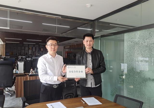 党总支书记李大勇和建筑动画技术专业主任张杰分别与徐州艺源动画有限公司总经栗锋和徐州神艺数字科技有限公司总经理朱伟,进行合作协议签订并向合作企业授“就业与实训基地”、“教师工作站”与“深度合作企业”牌匾。
