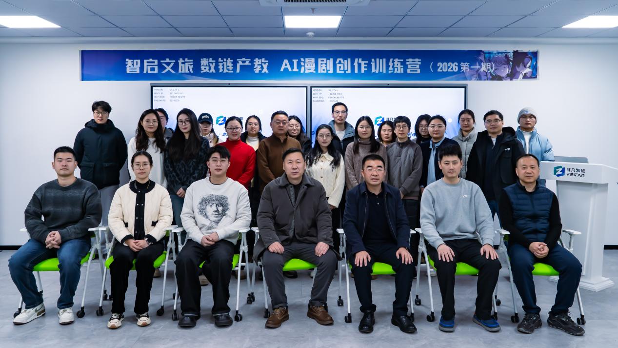 1月19日上午,为贯彻落实我校开展师资实践能力培训周工作,我院依托与江苏非凡智旅信息技术有限公司共建“文旅创意区域产教融合实践中心”,联合燃烧条件动漫(徐州)有限公司共同开展AI漫剧创作训练营,开班仪式在江苏非凡智旅信息技术有限公司举行。江苏非凡智旅信息技术有限公司总经理王海荣、副总经理王文玉、燃烧条件动漫(徐州)有限公司总经理邱天诚、艺术设计学院副院长王子夺、数字媒体艺术设计专业、建筑动画技术专业全体教师参加活动。